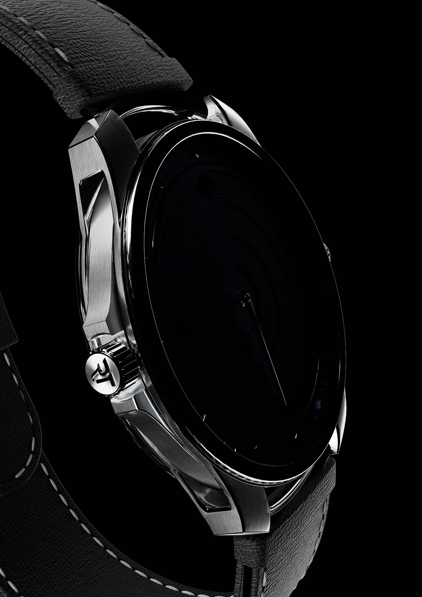 Le projet Zoom interroge la relation entre la montre et son porteur en proposant une nouvelle expérience fondée sur une interaction nouvelle. Inspirée de l’univers de la photographie et de sa gestuelle, cette montre permet désormais de “zoomer” dans le temps grâce au coulissement des couronnes situées sur les flancs du boîtier. Plus l’amplitude du mouvement est importante, plus grande est la précision de la montre.