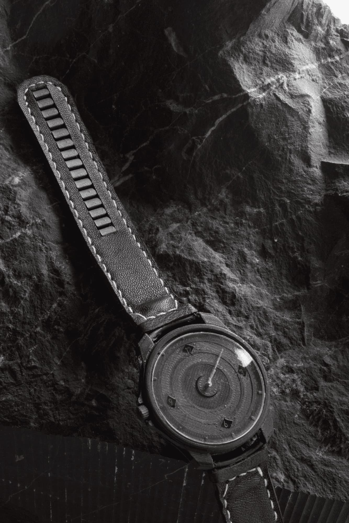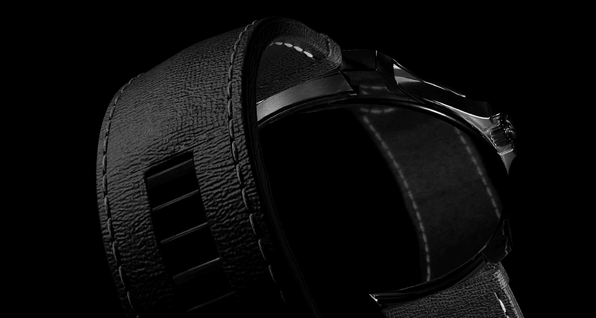 À chaque manipulation, l’aiguille unique effectue plusieurs quelques rotations rapides du cadran avant de se repositionner sur l’échelle demandée. Enfin, en raison des fréquentes manipulations qu’exige cette montre, son bracelet en cuir est équipé d’un système de fermoir à dents, offrant un ajustement précis et personnalisé. Ces dents, discrètement insérées entre deux couches de cuir, garantissent à la fois un confort optimal et une esthétique épurée.