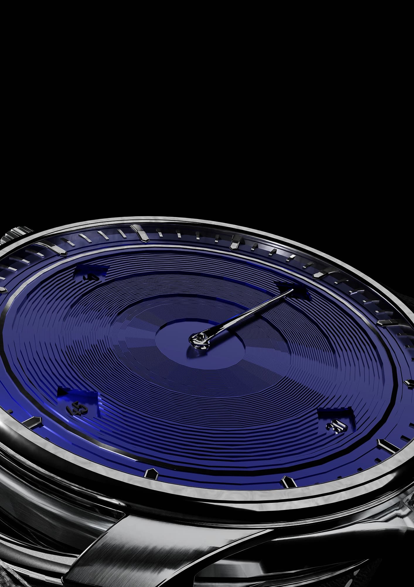 Dotée d’une aiguille unique, la montre adapte ainsi sa temporalité et peut aussi bien indiquer les mois que les secondes, en fonction des besoins du porteur et de son rythme de vie. Afin de faciliter cette transition, quatre guichets laissent apparaître les index correspondant à la temporalité sélectionnée. Lors d’un zoom ou d’un dézoom, ces index glissent et disparaissent progressivement pour révéler ceux de la nouvelle échelle de temps .